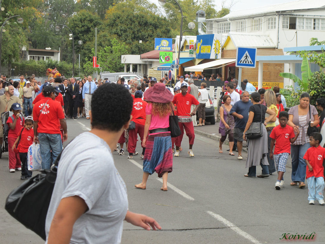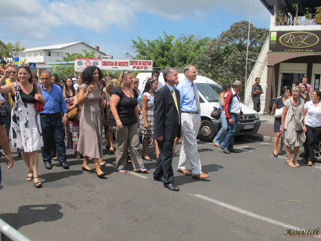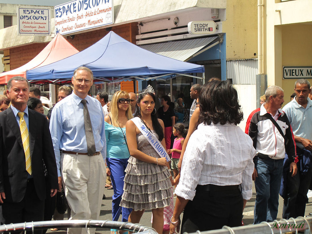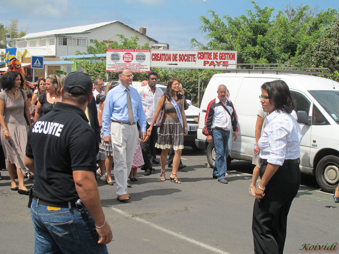 C’est vers 10h20 qu’un défilé très animé a pris le départ pour se rendre au parc Jean de Cambiaire. En tête de ce défilé on pouvait apercevoir Laëtitia Nativel, la nouvelle Miss ville du Tampon, le Maire de la commune,  Paulet Payet, le président du Conseil Régional de la Réunion, Didier Robert entre autres …