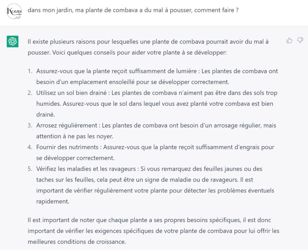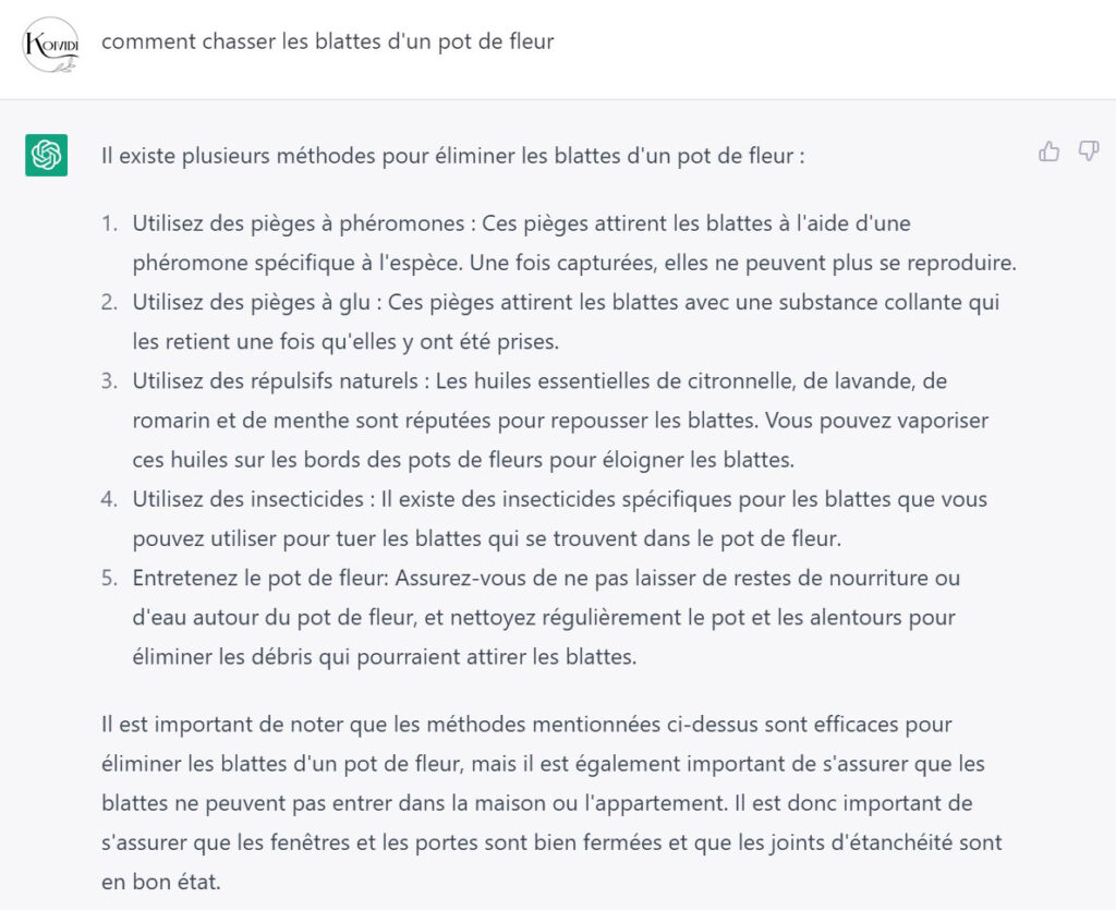 Même question concernant les cochenilles. A noter que ChatGPT garde le contexte de la conversation. Il n’est pas utile de rappeler les éléments de la question précédente.