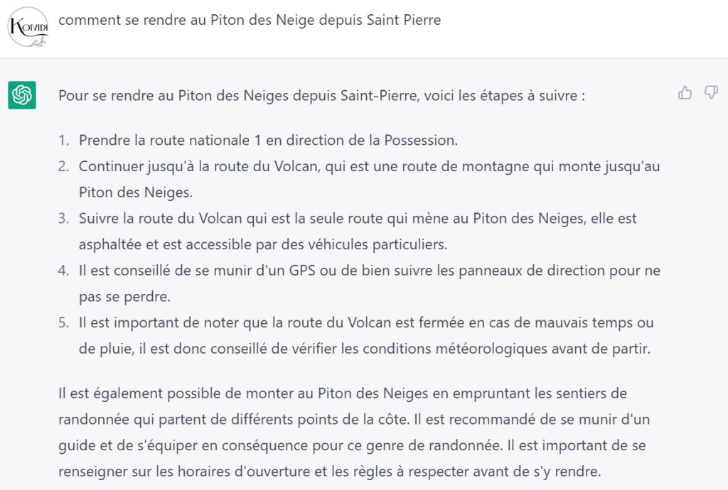 Autant dire qu’il vaut mieux ne pas trop se fier à ChatGPT pour le moment pour aller au Piton des Neiges.