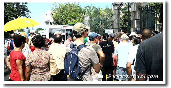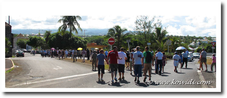 Ensuite direction la Sous-Préfecture de Saint-Pierre, où après avoir patienté un long moment sous une chaleur écrasante on nous apprend que des renforts techniques venus de l’extérieur seront à la Réunion pour faire fonctionner la centrale thermique du Gol. Des renforts de l’extérieur ? Les grévistes sont toujours planqués ? Fuir à des réquisition préfectorale est un délit.