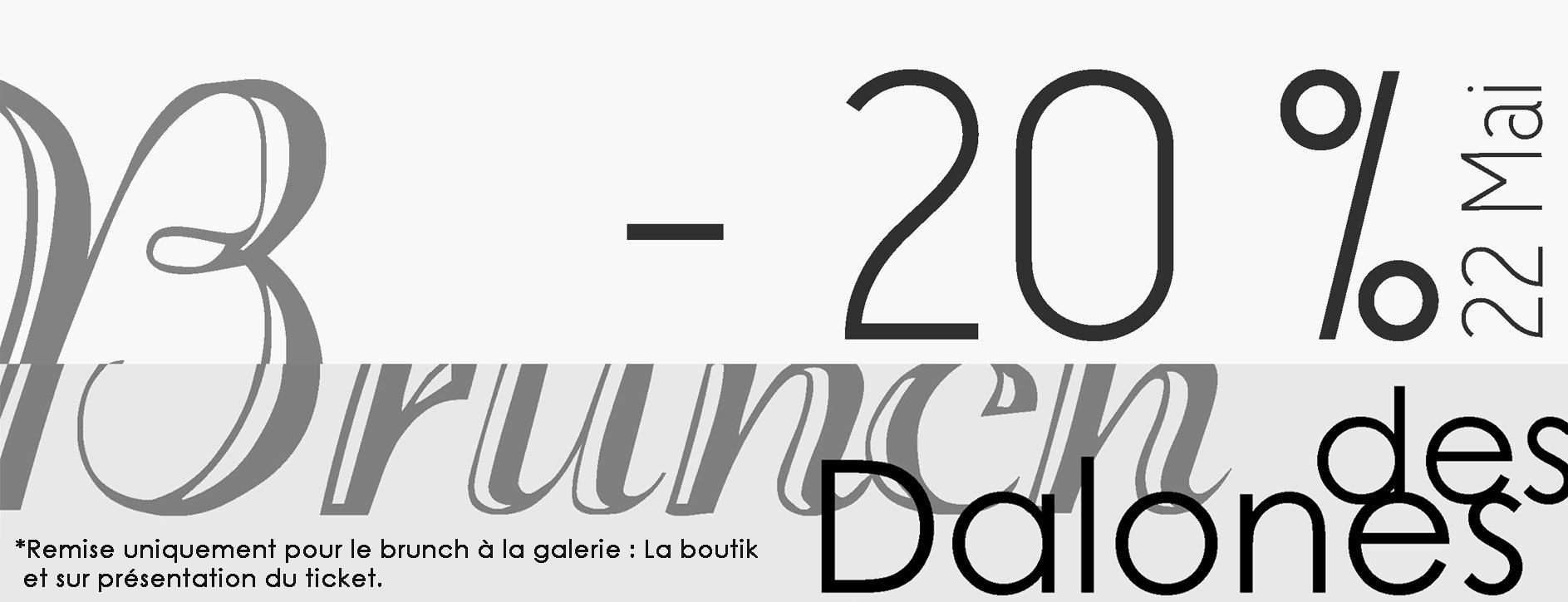 Cerise sur le gâteau à l’occasion du brunch des Dalones, une réduction de 20% vous est offerte. cette réduction est valable pour le dimanche 22 mai 2011 à la galerie : La Boutik et sur présentation du ticket de réduction en image ci-dessous, il vous suffit de cliquer dessus et d’imprimer :
