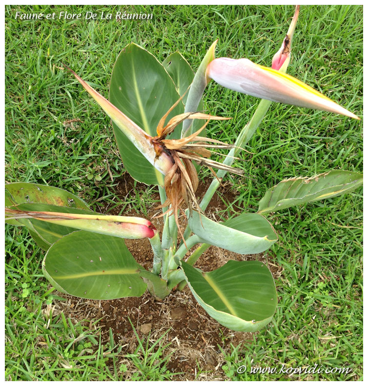 L’ oiseau de Paradis ou Strelitzia reginae est originaire d’Afrique du Sud, il orne beaucoup de jardin créole de la Réunion. C’est une plante qui se développe bien dans les régions humides à semi-sèches, basses et moyennes altitudes.