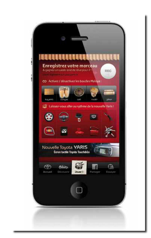 Ainsi, il est question aujourd’hui dans cet article de la fusion entre une voiture et la musique. Grâce à l’application iPhone Yaris Réunion, développée par Cahri à l’occasion du lancement de la nouvelle Yaris, on peut mixer soi-même les sonorités du véhicule à celles du Maloya en boucle. CMM Automobile a fait pour l’occasion le choix d’un support moderne et en plein essor : l’iPhone.