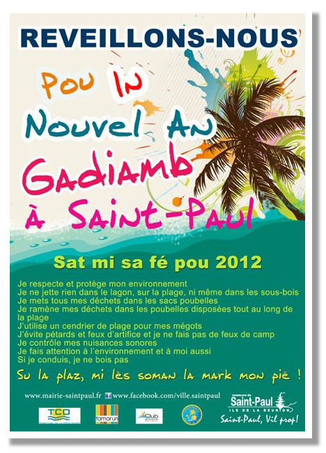 Pour sensibiliser la population sur le respect du site de l’Ermitage la Mairie de Saint-Paul a réalisé l’affiche ci dessus, un genre de charte du bon citoyens de 2012, alors réveillonnons bien, réveillonnons dans le respect de tout ce qui nous entoure 😉