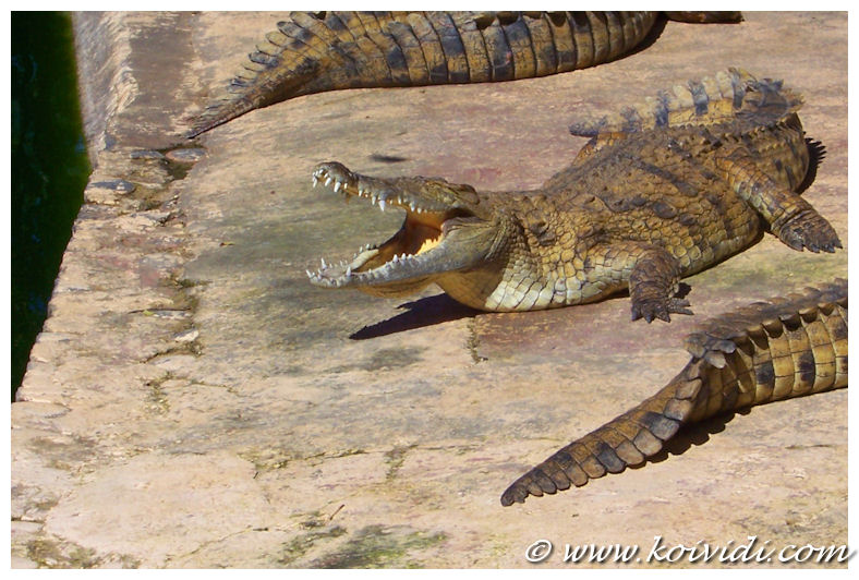Le repas est composé de carcasses de poulet et lorsqu’un de ces reptiles se saisit d’une carcasse le bruit du claquement de ses mâchoires retentit et ajoute un peu plus de danger au spectacle du banquet. Il faut dire que le crocodile est un animal qui est doté de mâchoires très puissantes et qu’on ne l’imagine même pas accroché à son mollet.