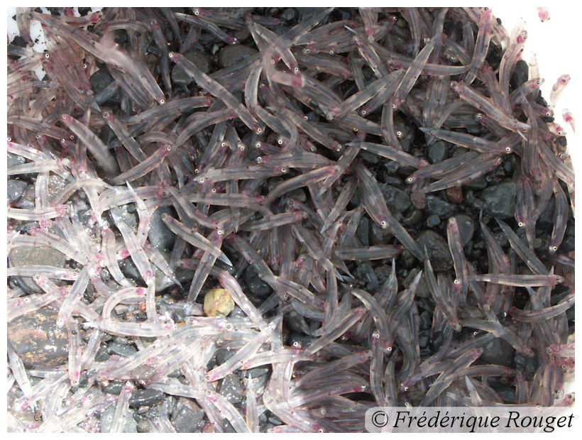 Et quand vient le début de l’été, au moment de la nouvelle lune, les alevins se massent à l’entrée des embouchures afin d’entamer la remontée des rivières.