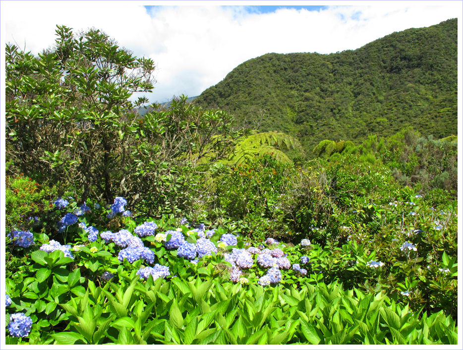 S’il est bien un endroit où l’hortensia est très présente, c’est bien sur la route des plaines, entre la Plaine des Cafres et la Plaine des Palmistes .