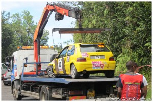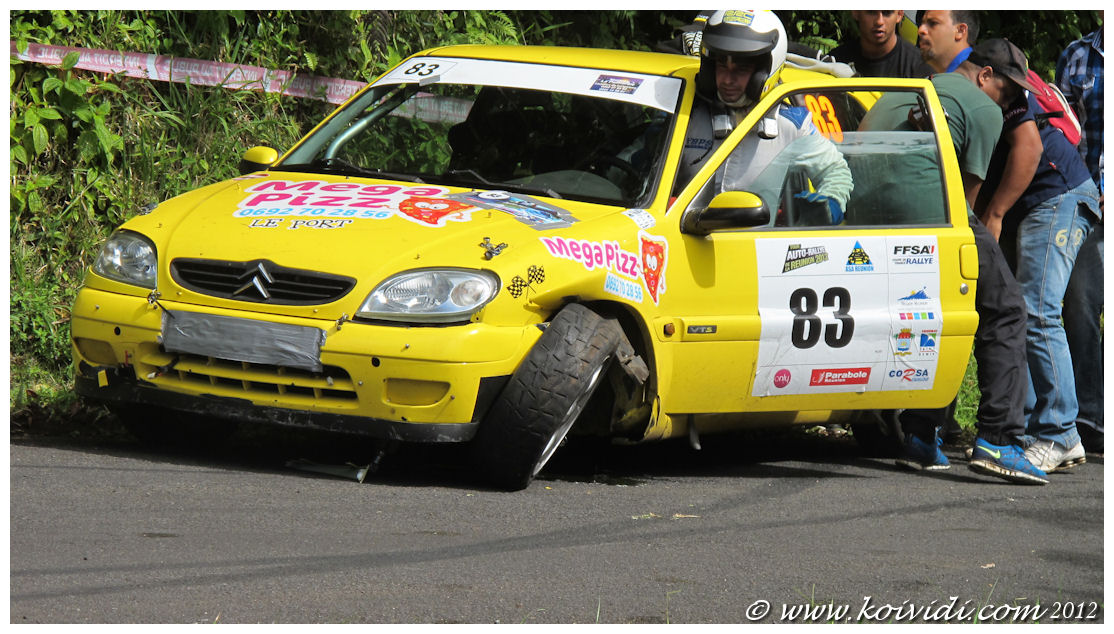 Par ailleurs, nous avons été témoins de la réception cassante de la Citroen Saxo N° 83 pilotée par PORTET Gregory et co piloté par DUPUY Frédéric :