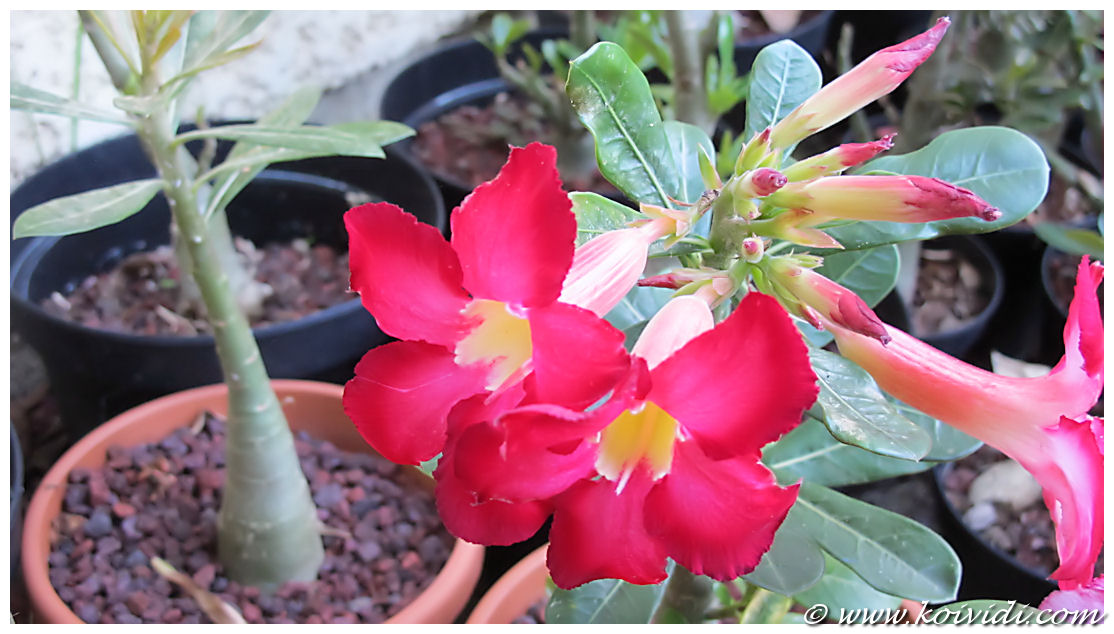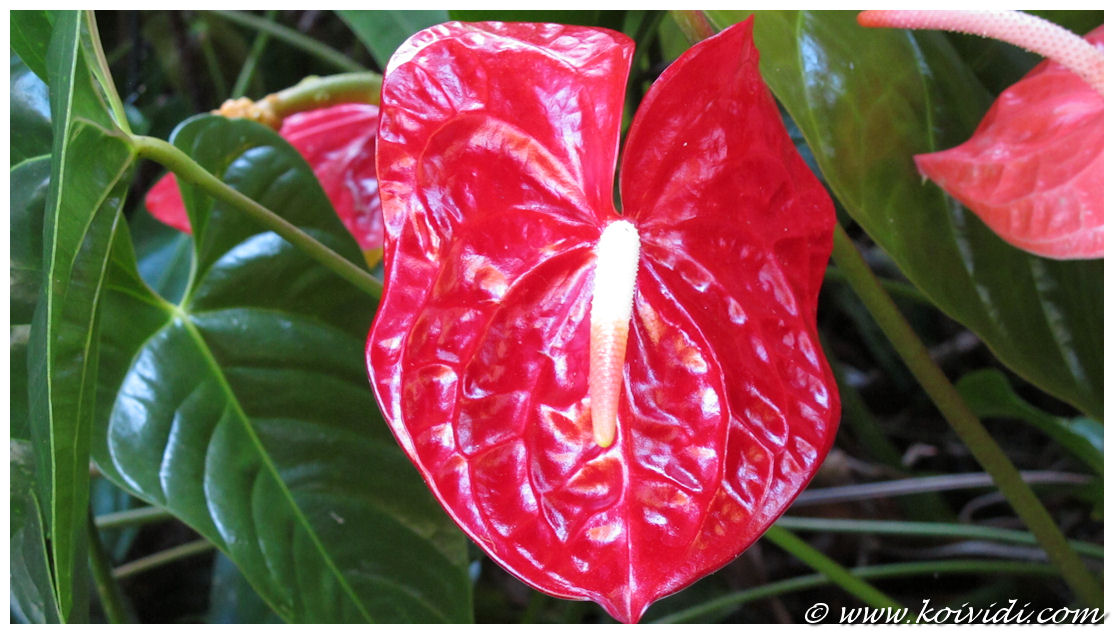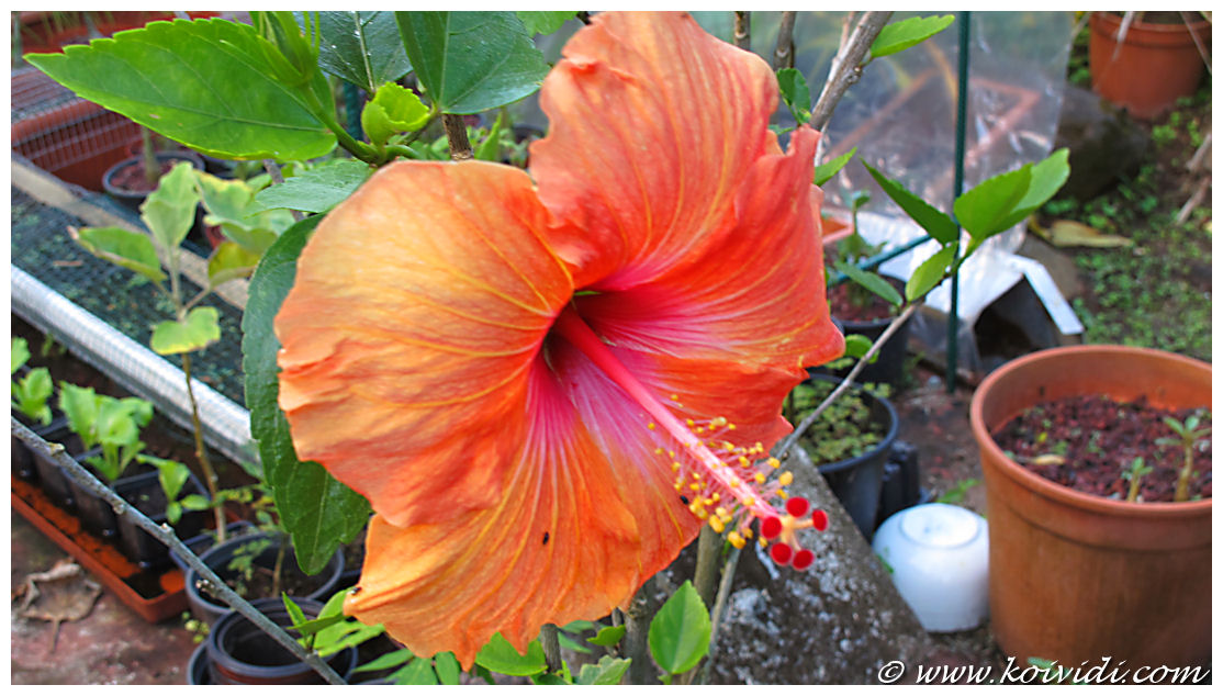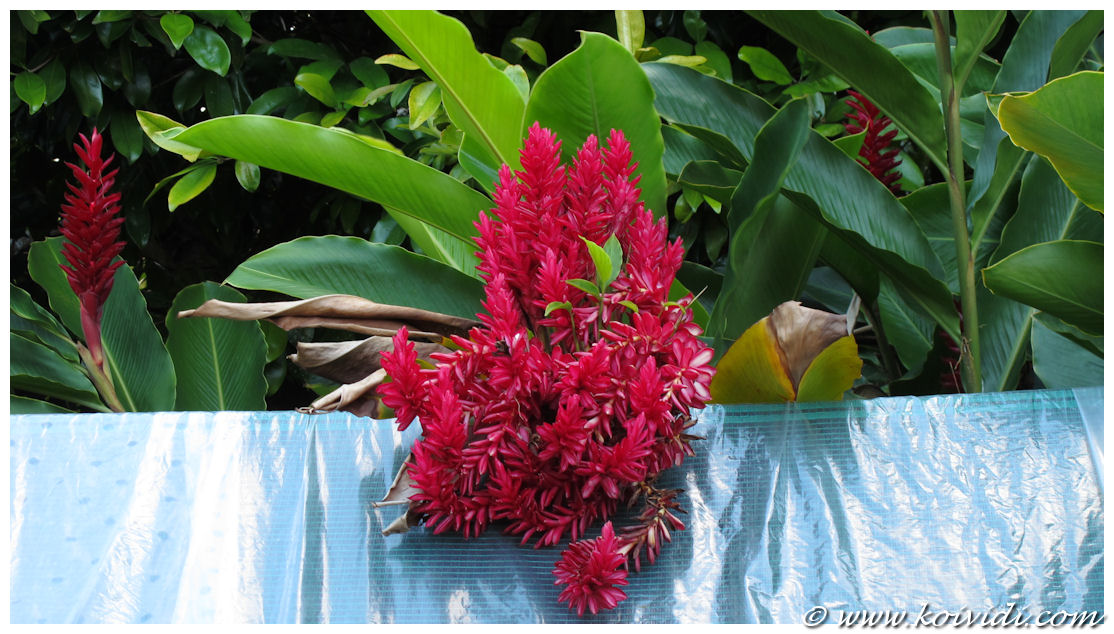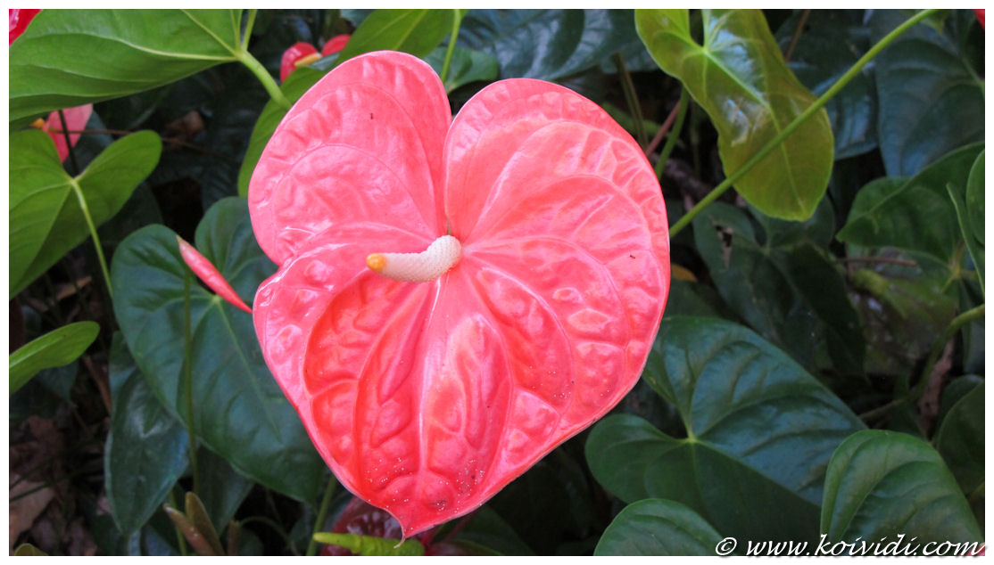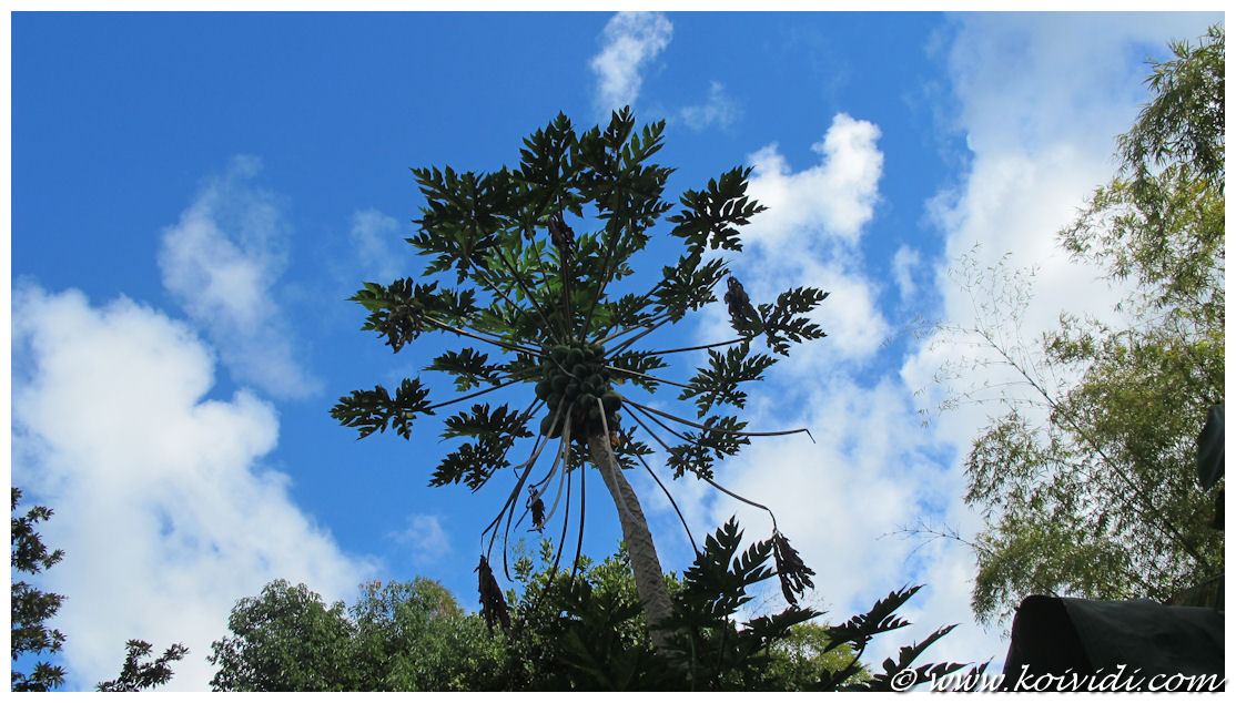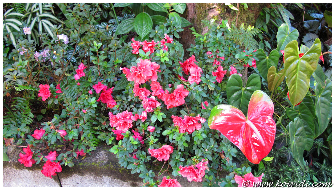 En vrac, nous avons pu voir dans ce jardin, des hibiscus, une large variété d’anthuriums, des camélias, des roses du désert, de la citrouille, des pommes en l’air, en pied de tomates, un poivrier, un citronnier, un papayer, un macadamia, des azalées, des évis, un cacaoyer, un sapotier, des kumkats, un cocotier,des combavas, un pied de letchis, du piment, un arbre à fuit à pain, un pied d’jacques, des concombres…