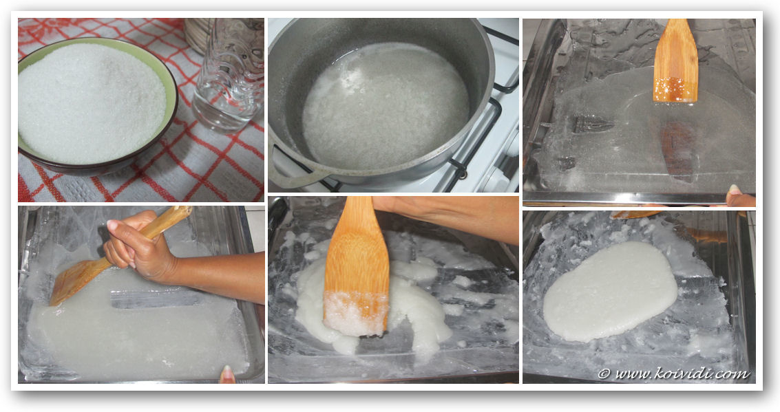L’ingrédient principal de la recette est le sucre blanc. Bien que la préparation soit simple, elle reste délicate car la pâte est fragile au moment où on la découpe pour en dégager les morceaux.