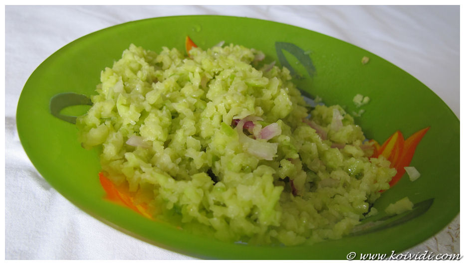 Ajoutez l’oignon haché, le piment + sel et 2 cuillères à soupe d’huile dans le bol de mangues. Mélangez le tout et voilà c’est prêt 😉