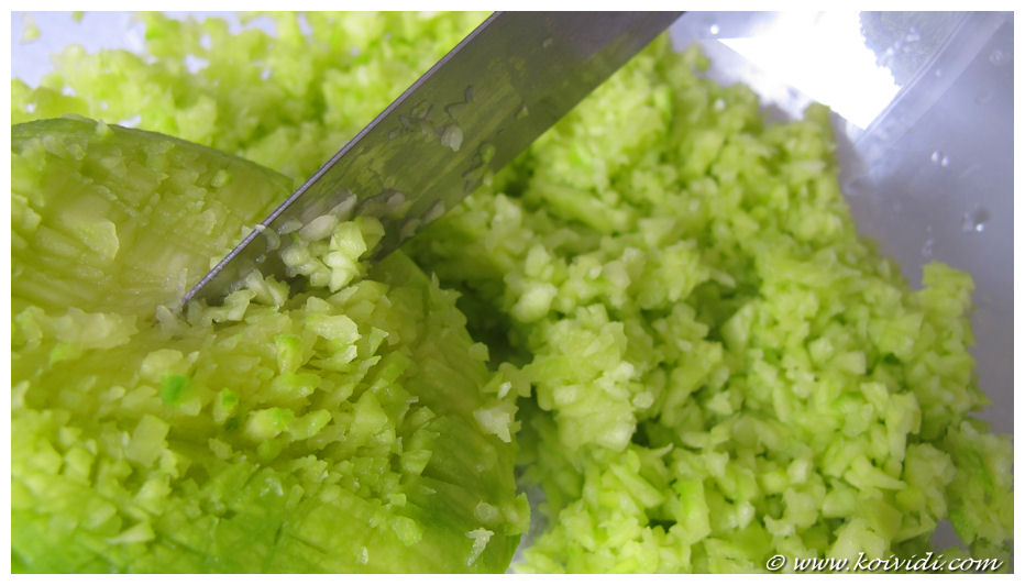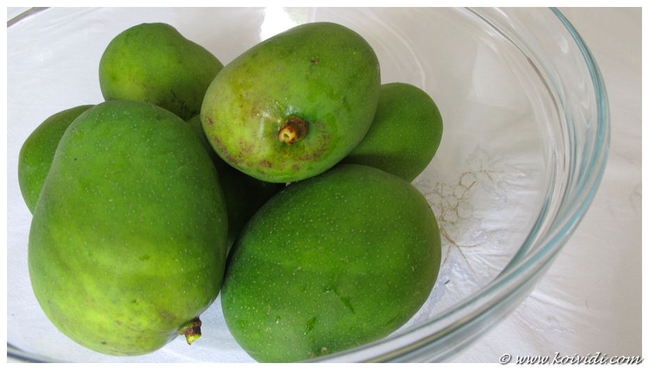 Laissez macérer les morceaux de mangues finement hachées dans de l’eau légèrement salée environ 15 minutes.