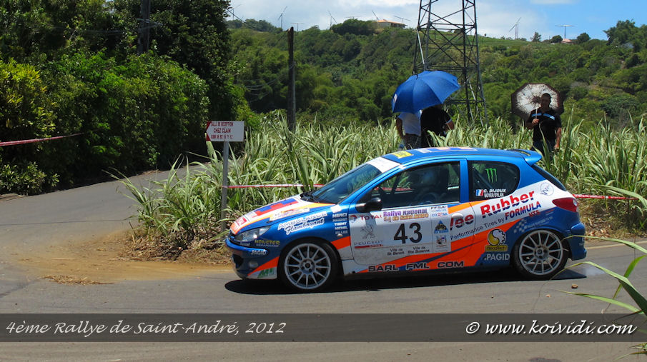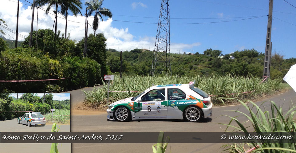 C’est au volant de sa Peugeot 206 WRC que Sam Caw Freve Stéphane remporte le 4ème rallye de Saint-André, suivi de Unia Malik et Bellon Samuel.