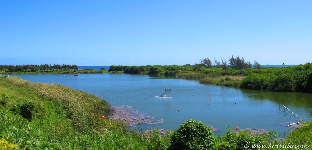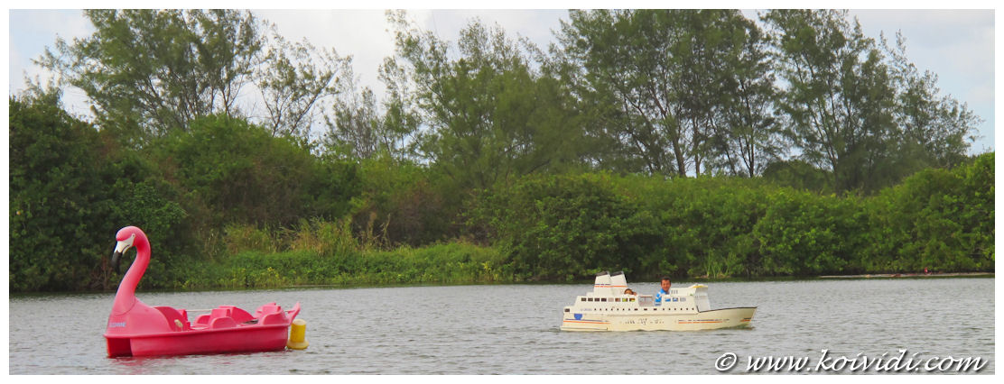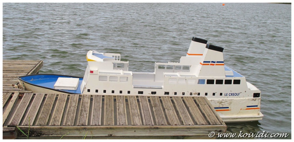La balade sur l’étang se fait soit à la force de ses jambes ou à bord d’un tout petit bateau à moteur électrique.