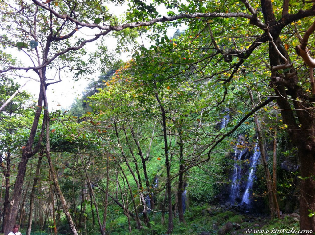 Le poulet en main, nous avons fait une escale à l’Anse des Cascades pour un pique nique sous les cocotiers. Les enfants ont joué à cache-cache derrières les arbres, pendant qu’on se prélassait à l’ombre. Une pause déjeuner qui n’a pas duré bien longtemps puisque aussitôt après on a pris la direction des fameuses cascades qui font la réputation du lieu.