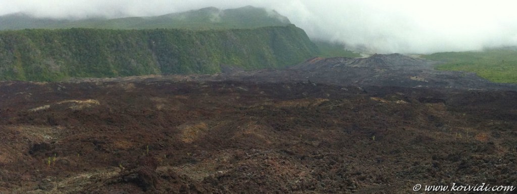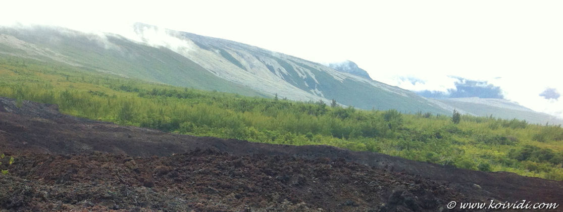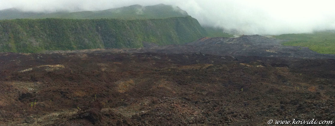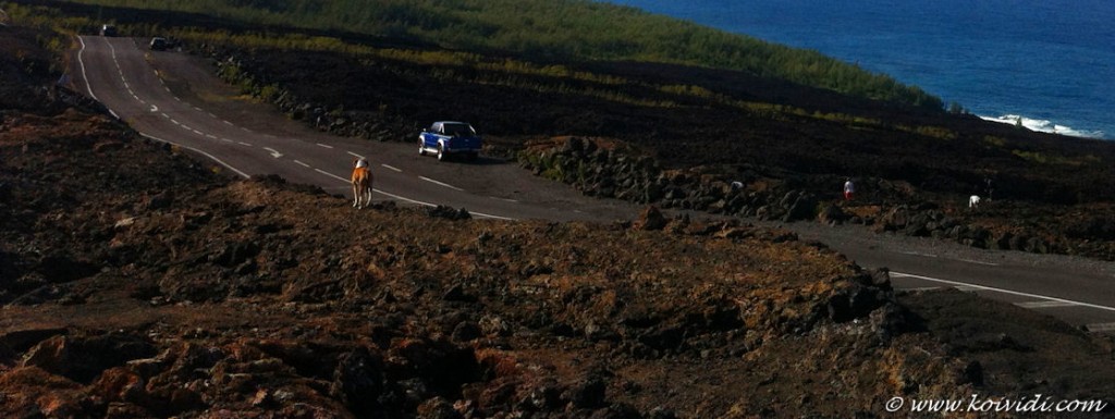 On poursuit notre balade vers la route des laves, sur les traces de l’éruption volcanique de 2007. « L’éruption volcanique d’avril 2007 a duré 1 mois (du 2 avril 2007 au 1er mai 2007). Elle fut très spectaculaire, la lave avait englouti la route du Grand Brulé pour aller se jeter dans la mer. […]Il y a eu d’autres éruptions après celle d’avril 2007, cependant celle-ci reste dans nos esprits d’une part à cause de son côté spectaculaire et d’autre part en raison des traces qu’elle nous a laissées. »