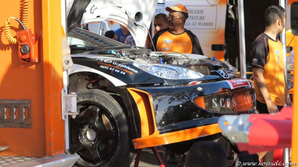 Sortie de route de Malik Unia dans la spéciale le Cap 1 n : «On aurait dû arrêté hier soir. Ca a commencé très mal déjà […] et là mon pied qui glisse sur la pédale de frein alors que ça n’arrive jamais… »dixit le pilote de la 306 Maxi au micro de Réunion 1ère .