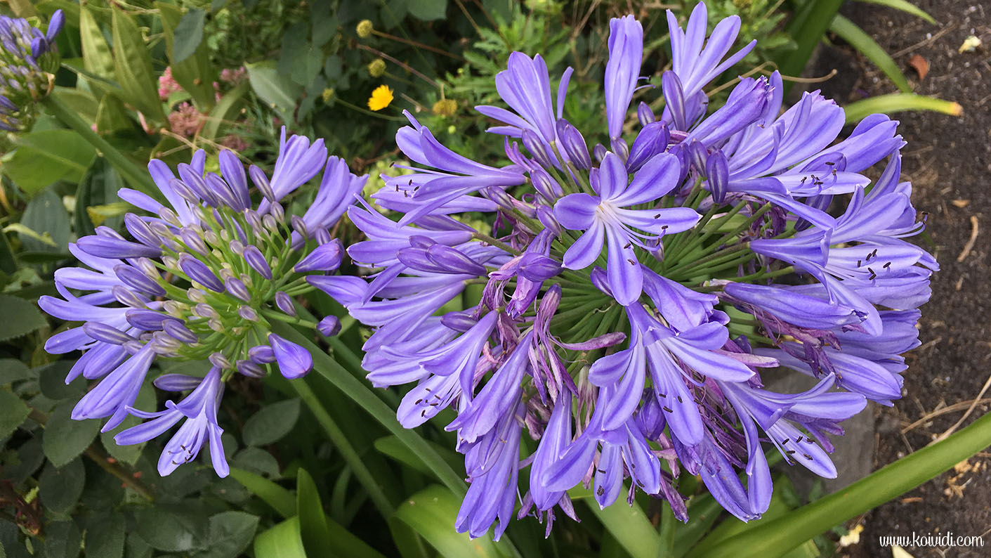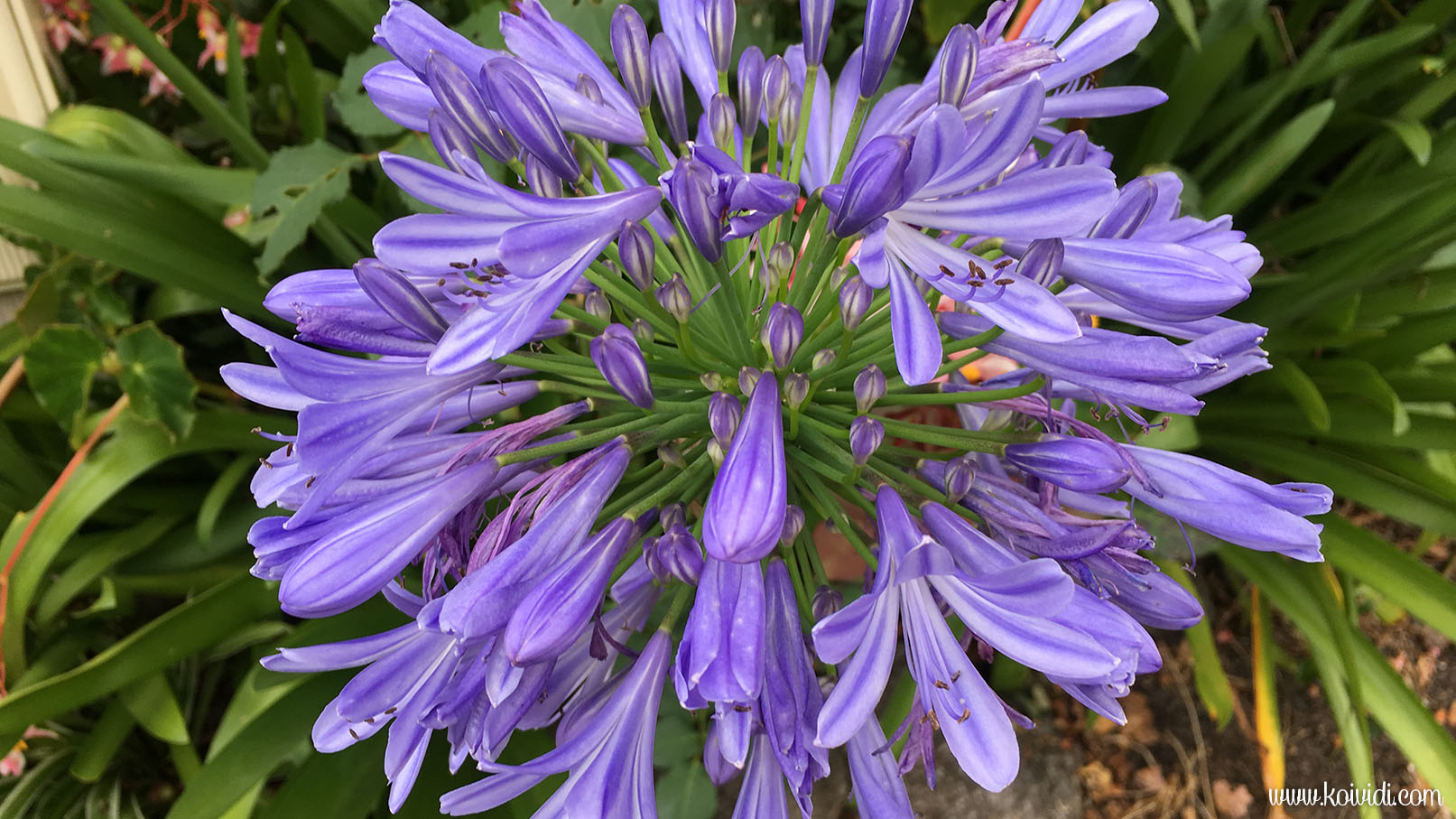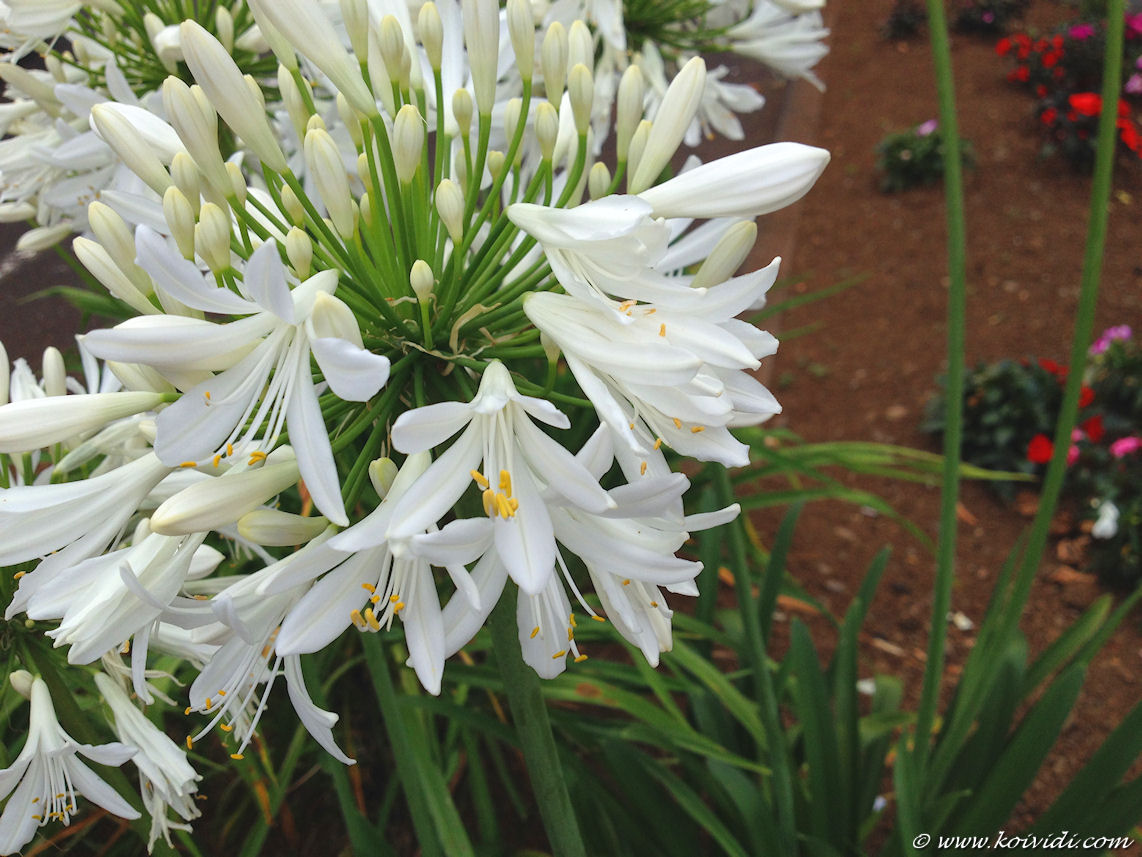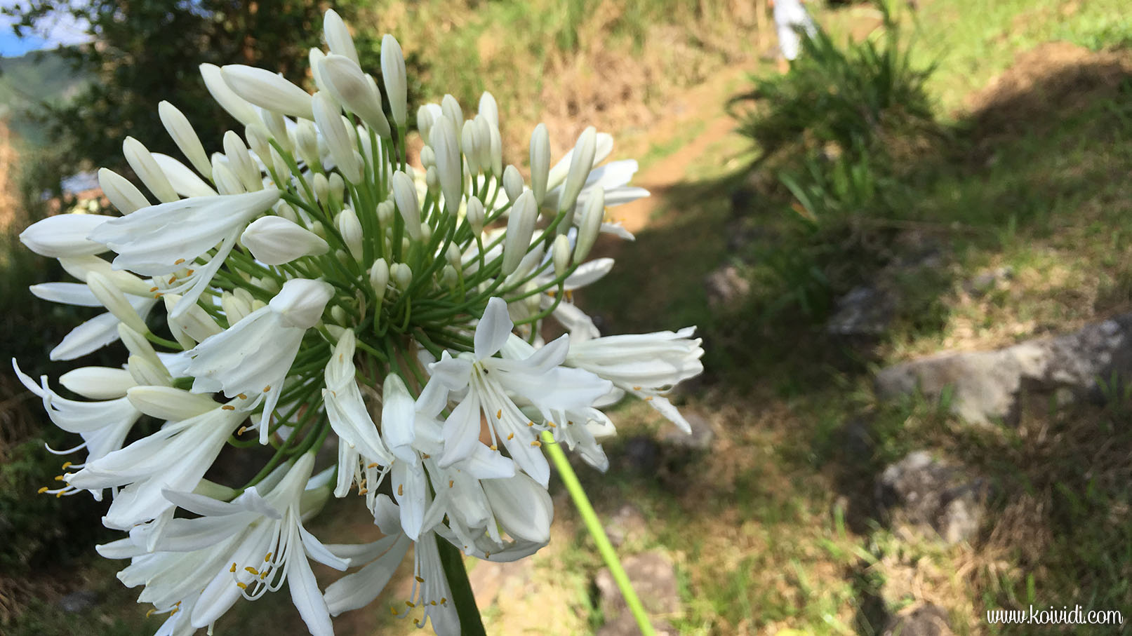 Vers le mois de novembre l’agapanthe commence à donner de somptueuses fleurs qui apparaissent sous forme de boules, d’ailleurs à la Réunion certains l’appellent « boule de blanc » ou « boule de bleu ». L’agapanthe est aussi connue sous les noms de lys du Nil ou tubéreuse bleue.