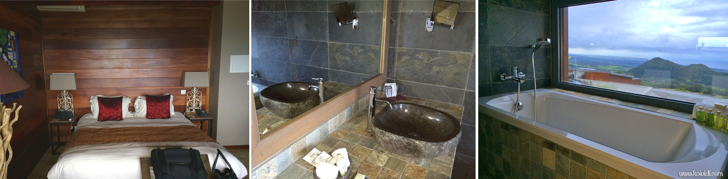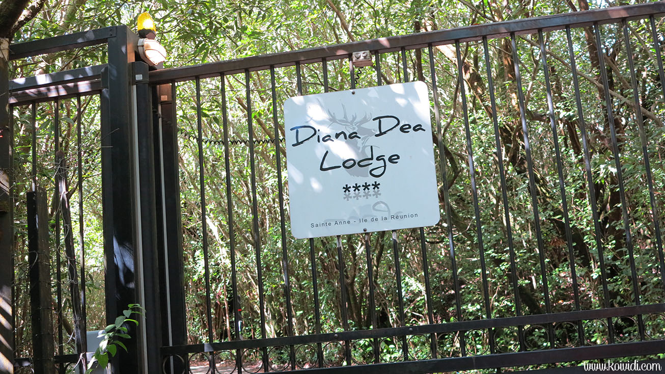 Pour s’y rendre on emprunte une route assez étroite bordée de champs d’ananas et de canne à sucre. Et comme pour marquer réellement notre entrée sur le « territoire » du Diana Dea Lodge Hôtel, nous sommes passés sous une haie de verdure assez épaisse, sombre et surprenante, comme si on entrait dans un autre monde.