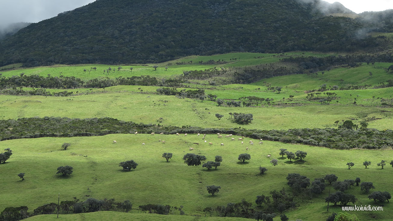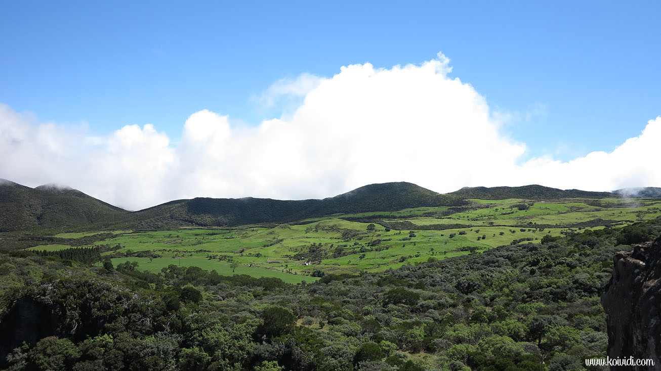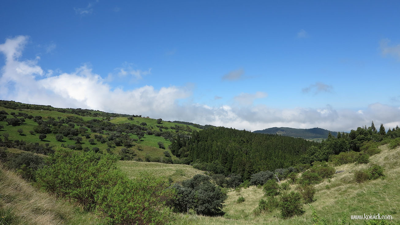 On commence la balade dans la forêt de Cryptomerias et on découvre très vite de vastes pâturages verdoyants.