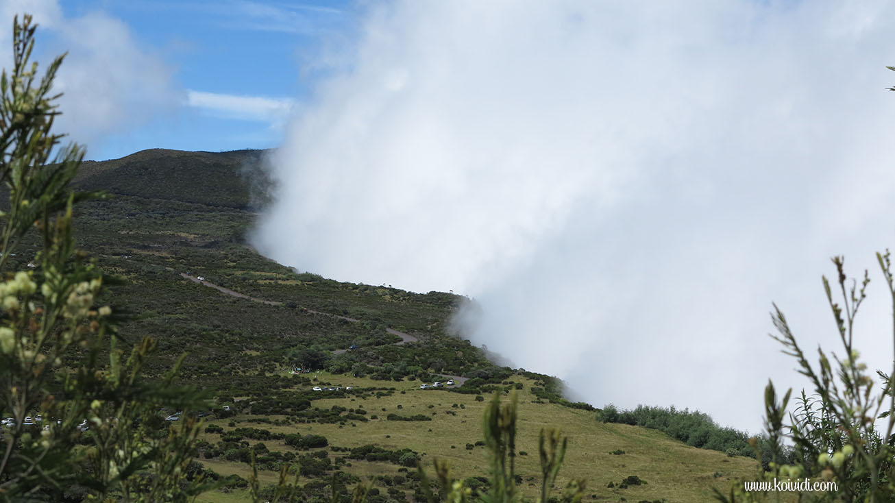 A 2136m d’altitude, le Nez de Boeuf offre une vue vertigineuse sur la Rivière des Remparts, à condition que les nuages n’aient pas envahi les lieux et ne bouchent pas la vue comme sur les images ci-dessous.