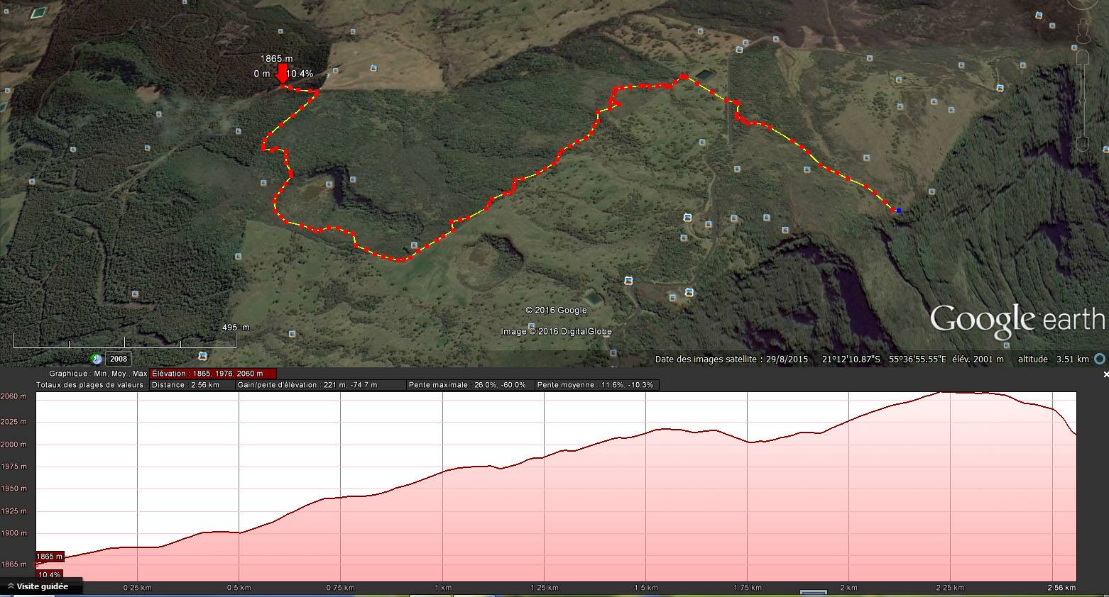 Des trous blancs vers le nez de boeuf on va passer par une forêt riche en fraises des bois, avec de magnifiques petits tamarins des hauts, des fleurs jaunes…