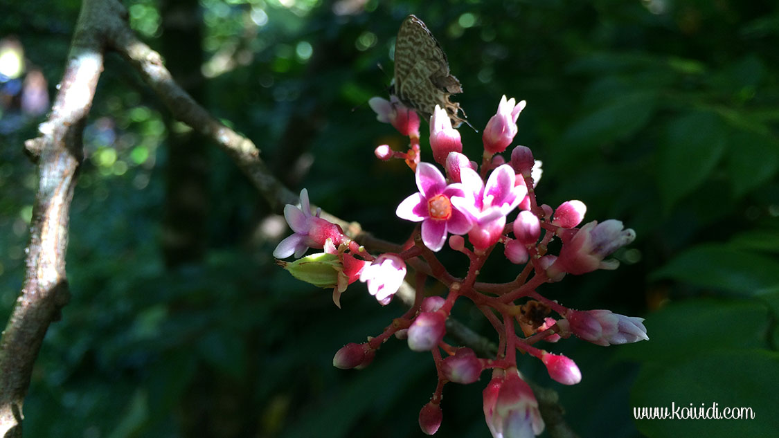 Les fleurs du carambolier sont regroupées en grappe et sont de couleur rose pourpre.