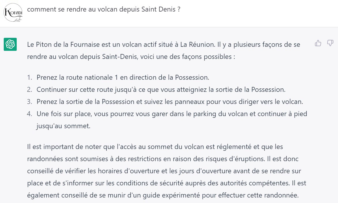 Autant dire qu’il vaut mieux ne pas trop se fier à ChatGPT pour le moment pour aller au Piton des Neiges.
