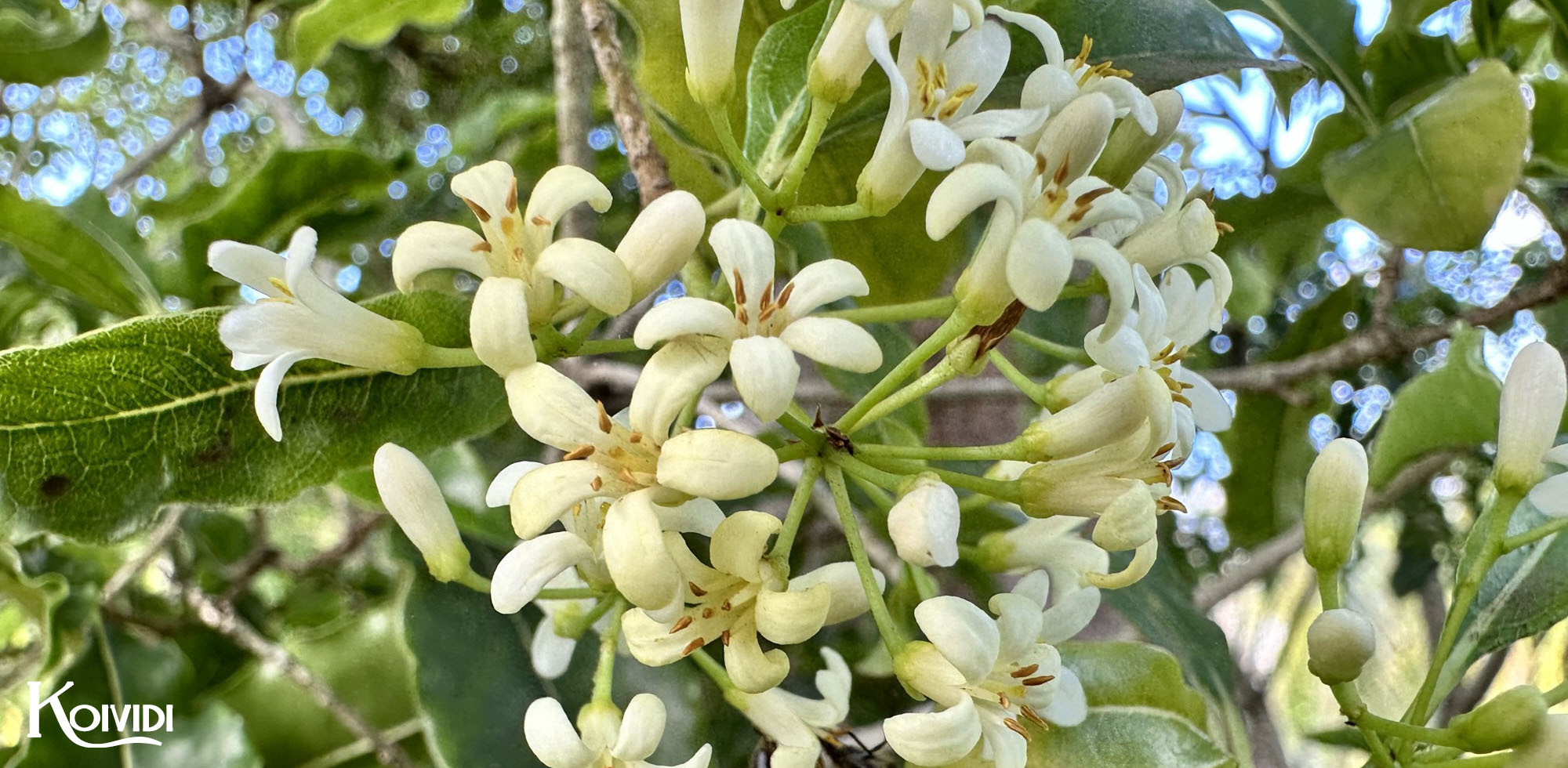 Les fleurs sont petites et blanches et regroupées en bouquet, avec une odeur agréable, et attirent les abeilles. Elles deviennent jaunes en se fanant.