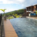 Se croire en vacances le temps d’un weekend, c’est possible ! Il suffit de se mettre en condition et bien entendu fuir son chez soi tout en restant à la Réunion. On s’est donc rendu dans un hôtel de Sainte-Anne (Saint-Benoît). Notre choix pour les lieux avait été motivé par la présence de cerfs, ce qui pour moi n’est pas très courant à la Réunion. Pour s’y rendre on emprunte une route assez étroite bordée de champs d’ananas et de canne à sucre. Et comme pour marquer réellement notre entrée sur le « territoire » du Diana Dea Lodge Hôtel, nous sommes passés sous une haie de verdure assez épaisse, sombre et surprenante, comme si on entrait dans un autre monde.